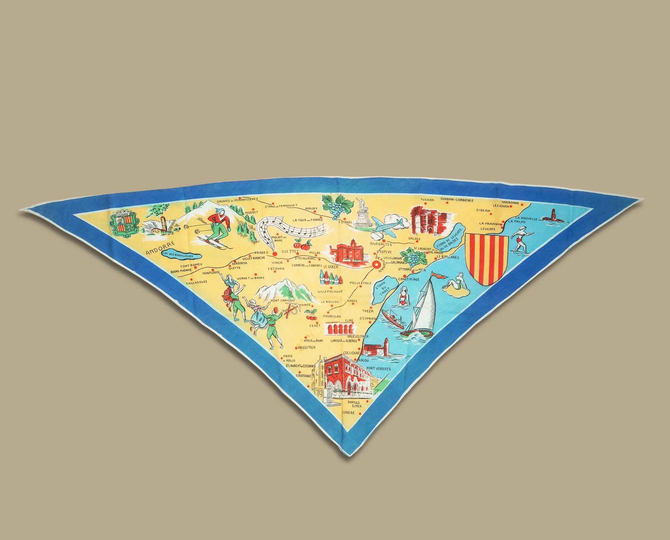 Foulard représentant la carte de Narbonne, Collioure, Andorre …