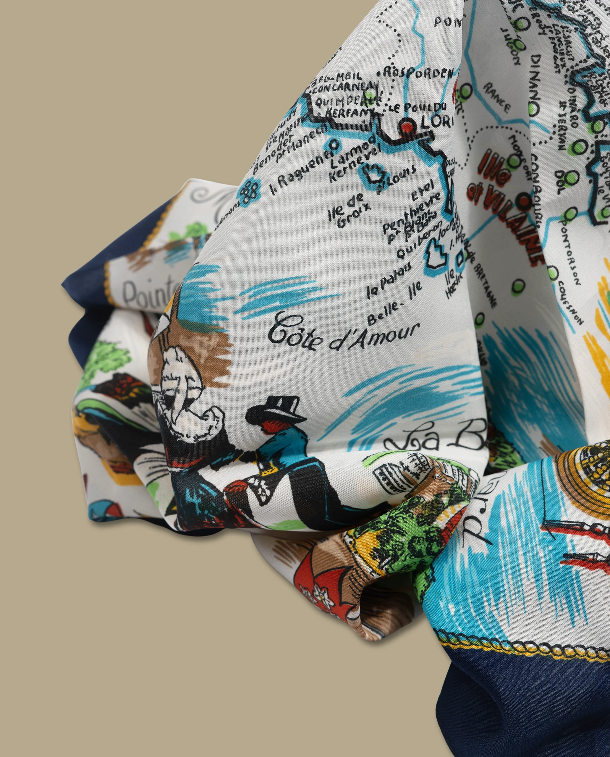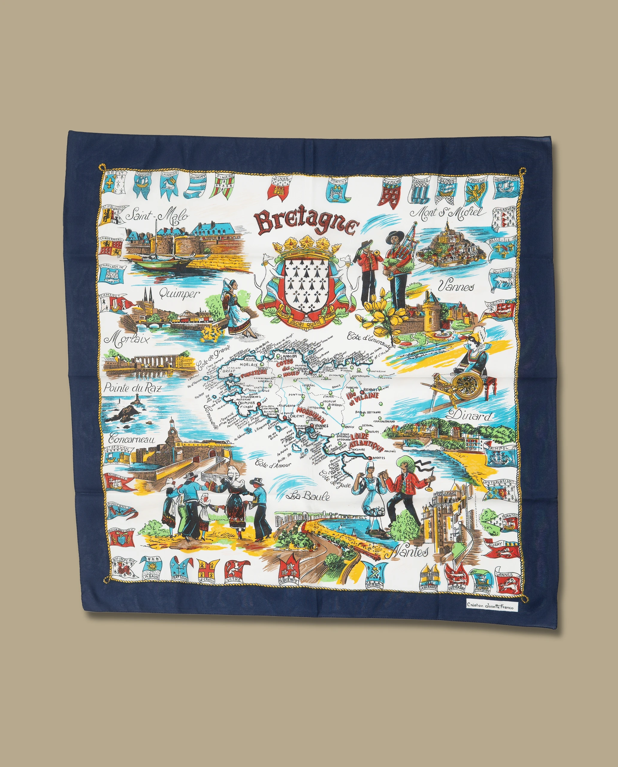 Foulard représentant la carte et lieux touristiques de Bretagne