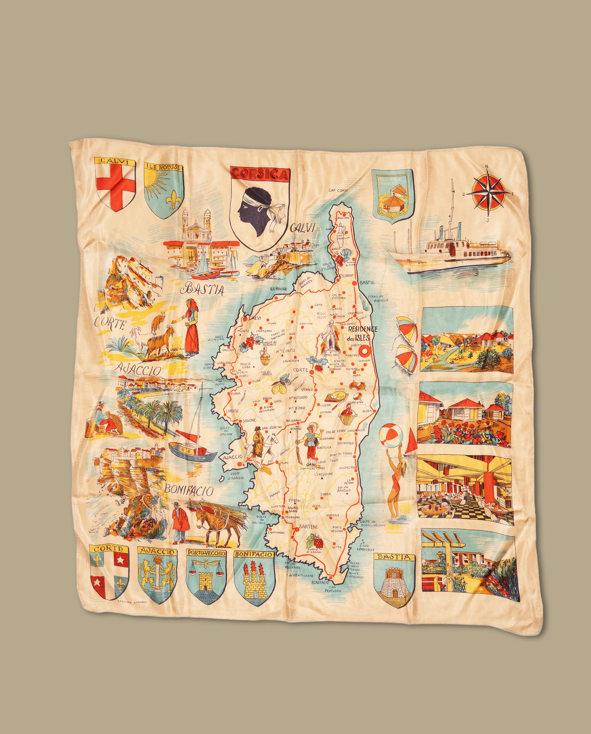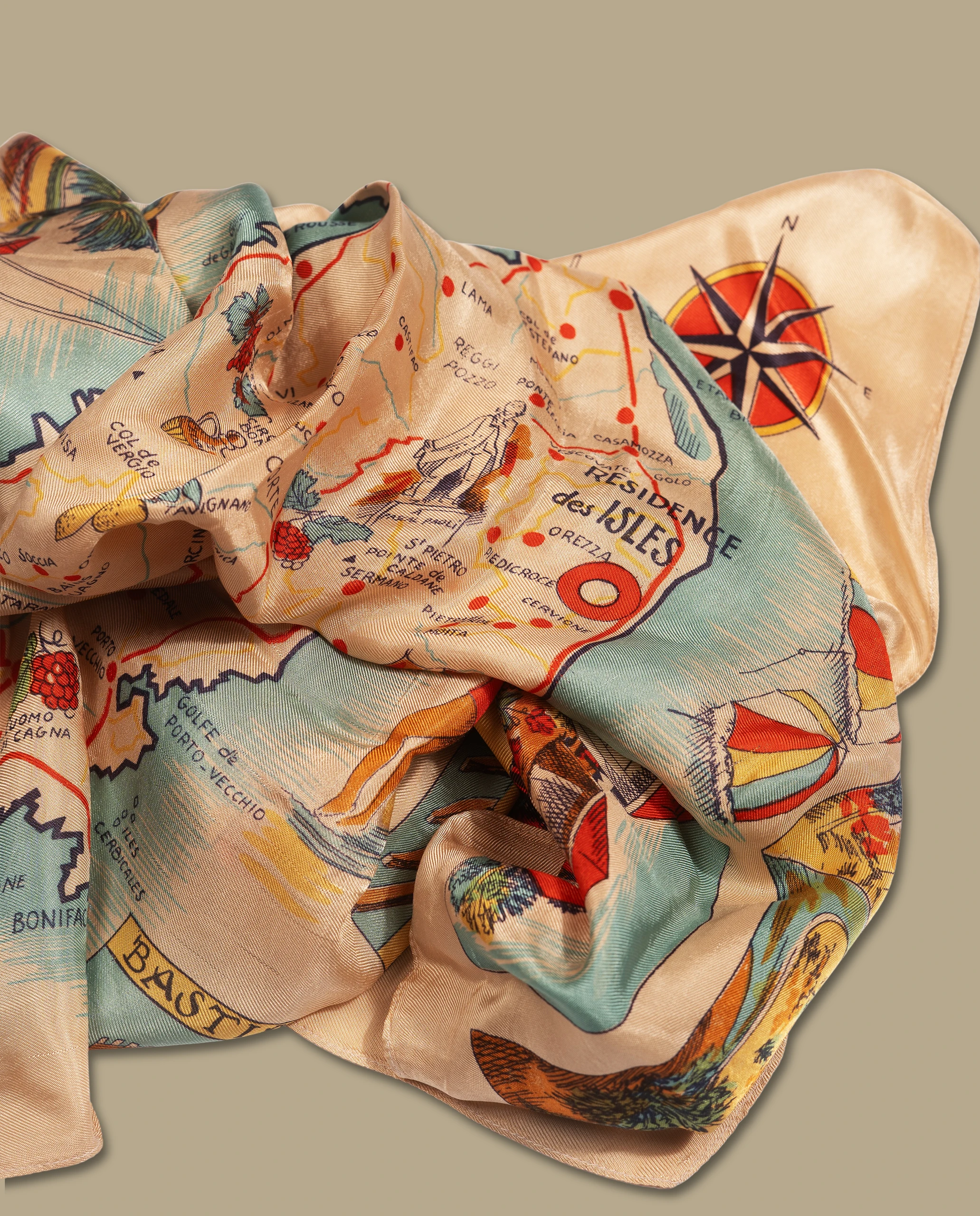 Foulard représentant la carte de la Corse.